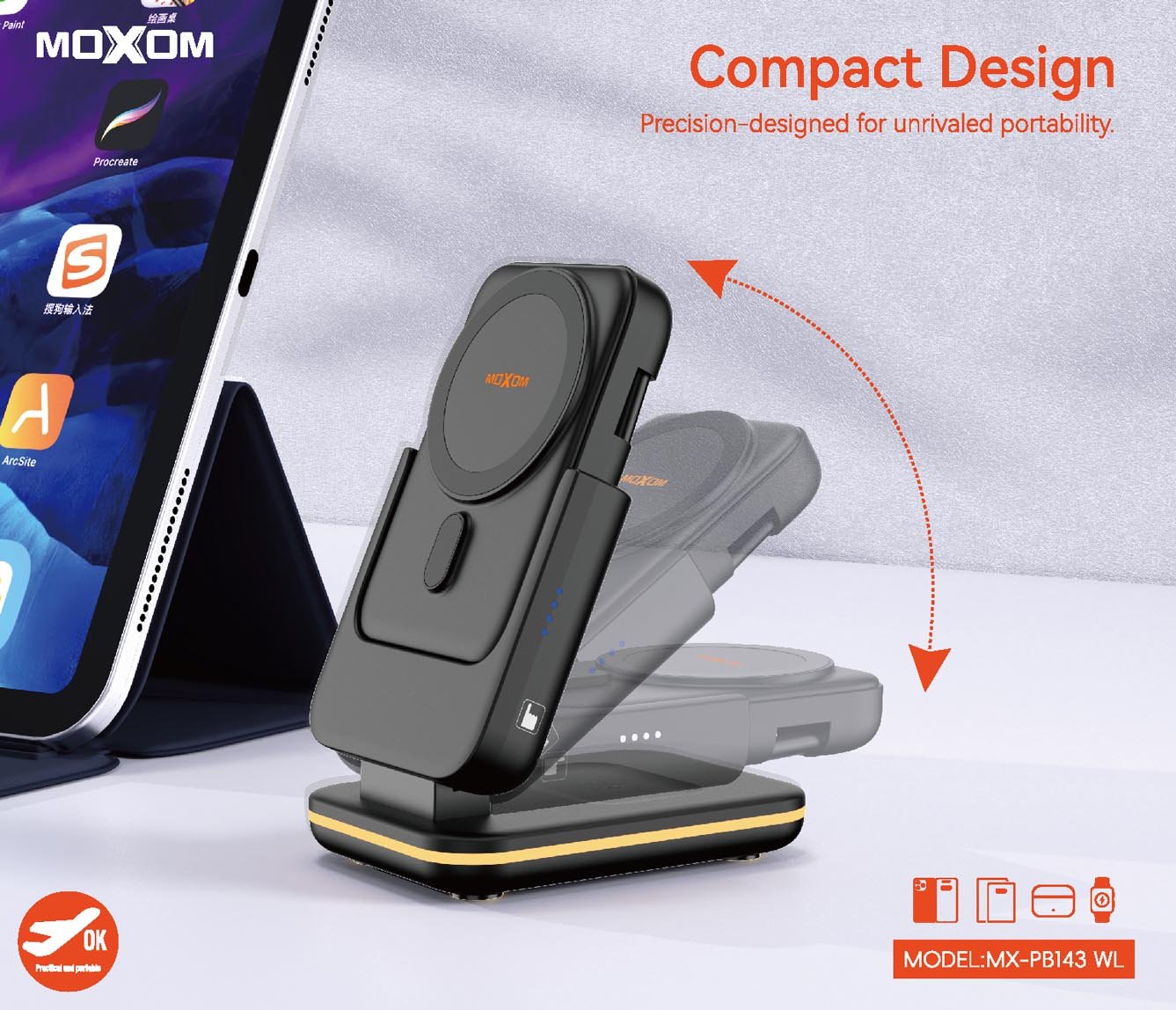 احصل على باور بنك موكسوم PB143 اليوم واستمتع بشحن لاسلكي سريع وعالي الكفاءة!