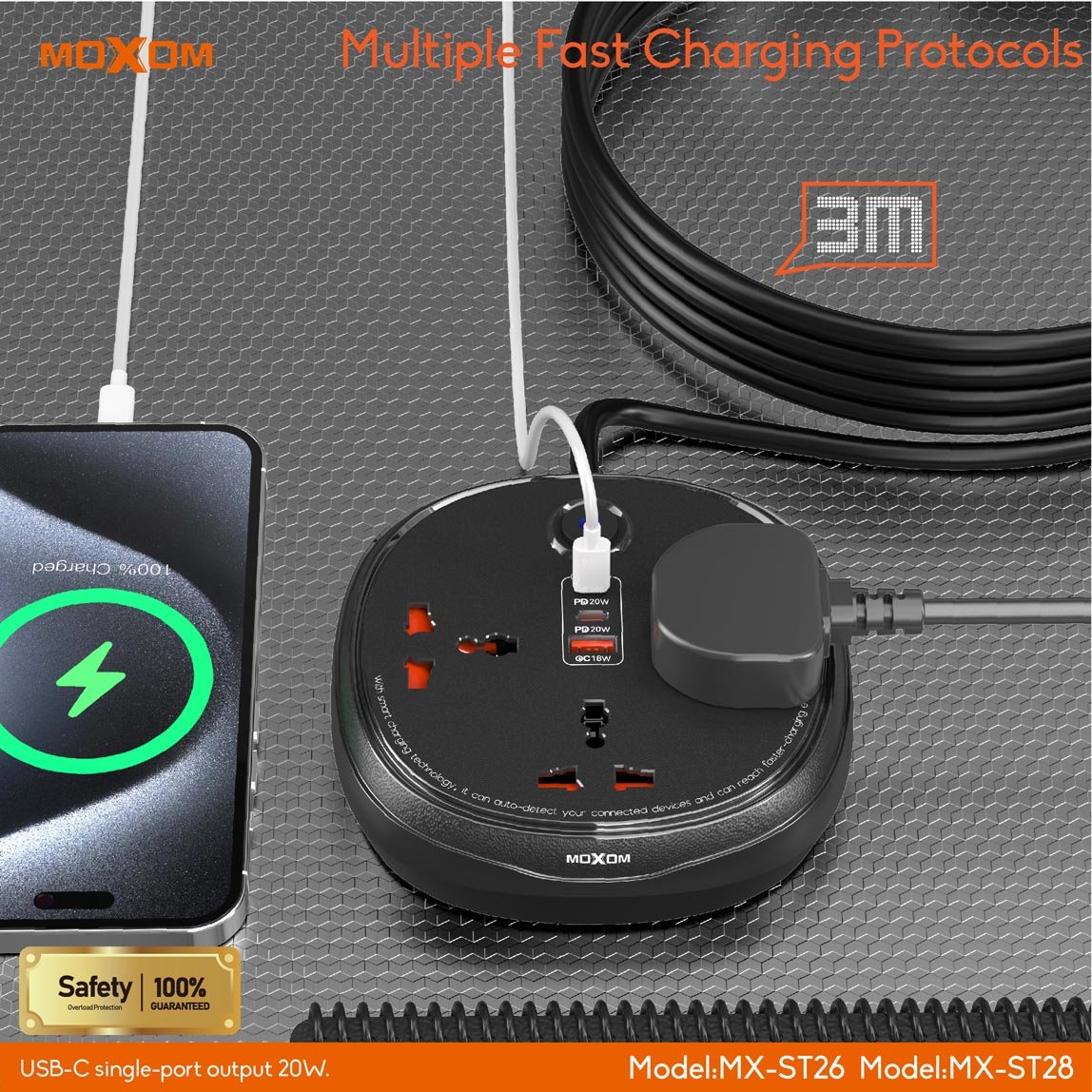 تعتبر توصيلة كهرباء وشحن ST28 من موكسوم الحل الأمثل لتلبية احتياجاتك الكهربائية والشحن في منزلك أو مكتبك. إليك كل ما تحتاج معرفته عن هذا المنتج الرائع: