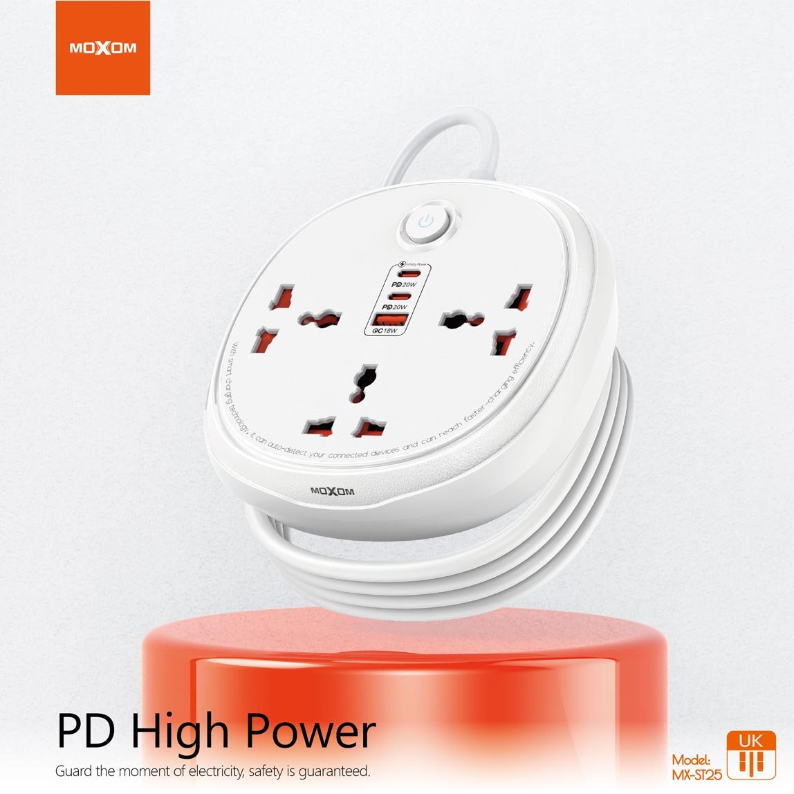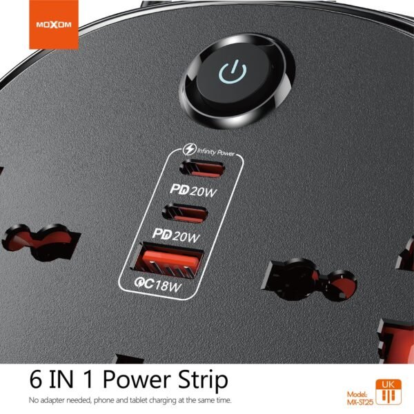 تجمع توصيل الكهرباء والشحن ST25 بين التصميم العصري والوظائف المتعددة، مما يجعلها الخيار الأمثل للأسر أو المحترفين الذين يحتاجون إلى شحن عدة أجهزة في وقت واحد. مع موكسوم، أنت مطمئن إلى أن أجهزتك محمية من ارتفاع التيار الكهربائي.