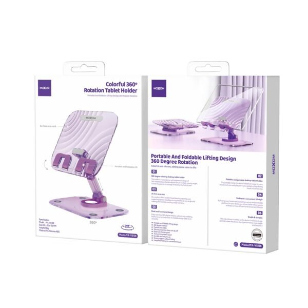 استمتع بتجربة استخدام مريحة مع حامل التابلت VS138 من MOXOM. يتميز هذا الحامل بتصميمه القابل للطي، مما يجعله مثالياً للاستخدام في المنزل أو المكتب، كما يسهل حمله أثناء التنقل.