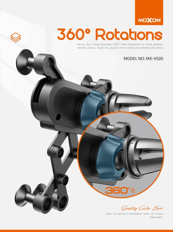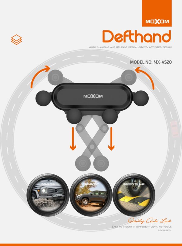 جلاس تلفون MX-VS20 سيارة جر دوار °360 حجم صغير MOXOM MX-VS20 DeftHand Mobile Holder