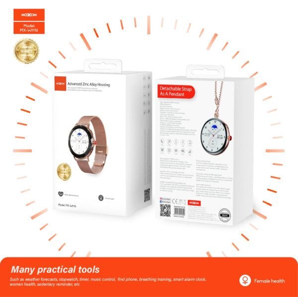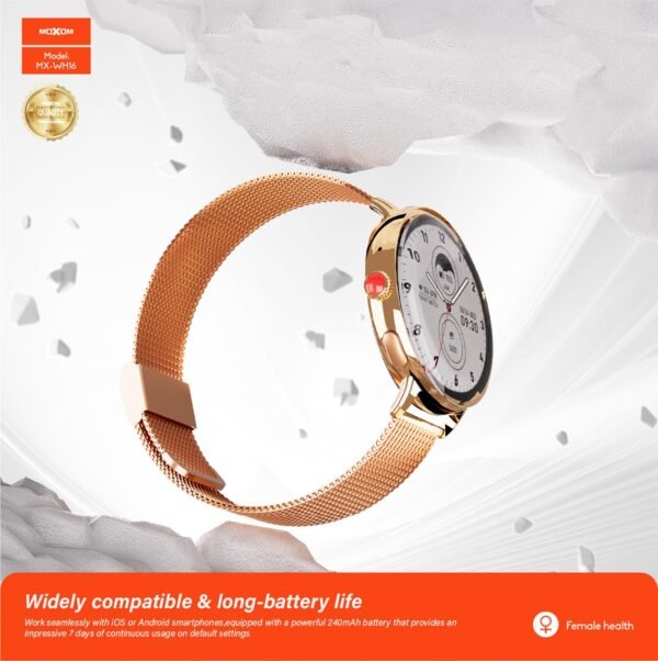 تجمع ساعة موكسوم WH16 بين الأناقة والفائدة، فهي ليست مجرد ساعة ذكية، بل هي قطعة مجوهرات يمكن استخدامها بطرق متعددة. يمكنك ارتداؤها في العمل، في صالة الألعاب الرياضية، أو في المناسبات الاجتماعية، مما يجعلها الخيار المثالي لكل مناسبة.