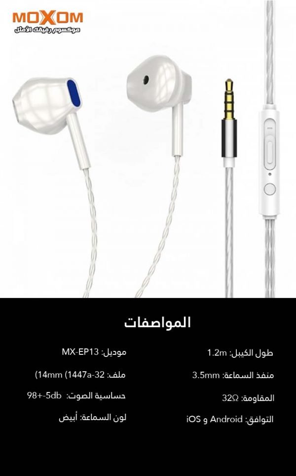 استمتع بتجربة صوت استثنائية مع سماعات اذن MX-EP13 من موكسوم. تتميز هذه السماعات بتقنية صوت HIFI التي تضفي عمق ووضوح على جميع أنواع الموسيقى، مما يتيح لك الاستمتاع بتفاصيل كل نغمة.