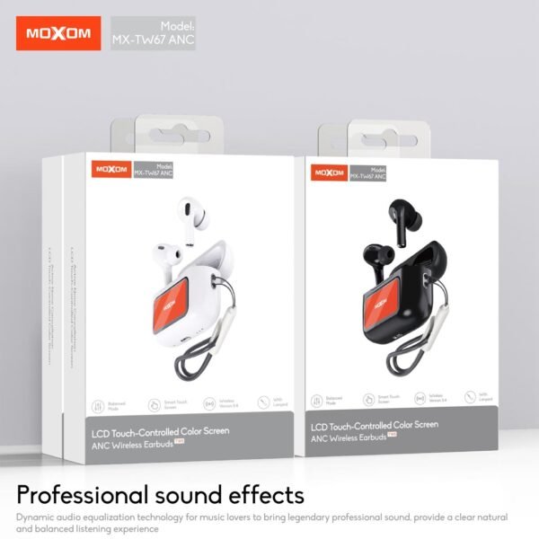 استمتع بتجربة صوتية فريدة مع سماعات ايربود TW67 موكسوم الذكية، التي تتميز بتقنية عزل الضوضاء المتقدمة ANC، مما يتيح لك الاستمتاع بالموسيقى والمكالمات بدون أي تشويش خارجي.