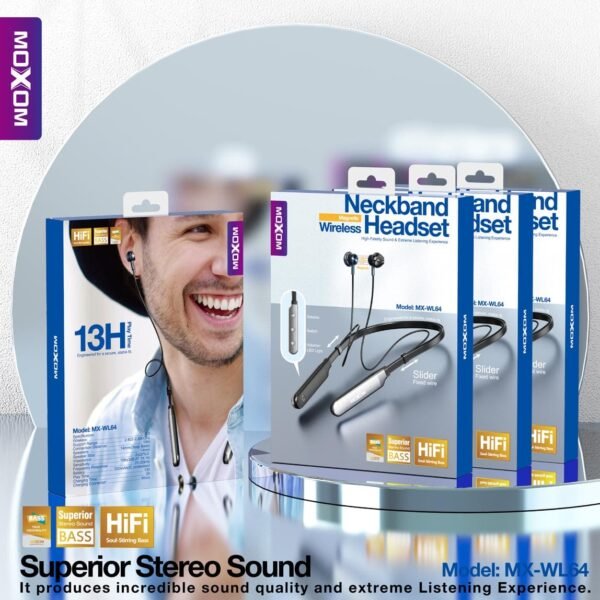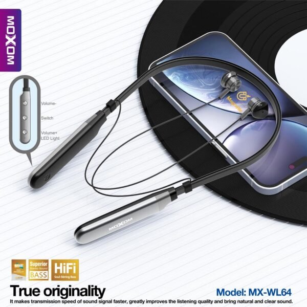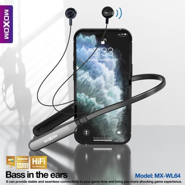 صوت ستيريو احترافي: تقدم سماعات MOXOM MX-WL64 تجربة صوت غنية وواضحة، مما يمكنك من الاستمتاع بموسيقاك المفضلة بجودة عالية.