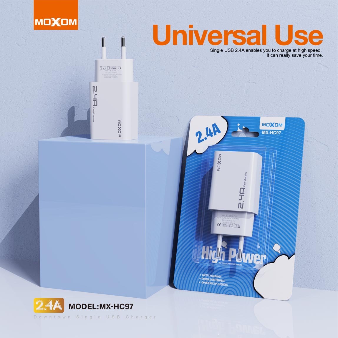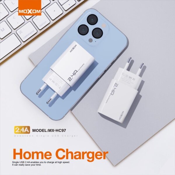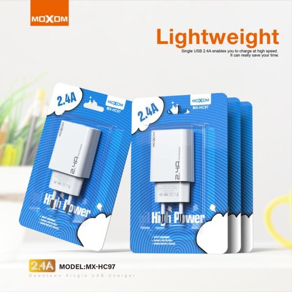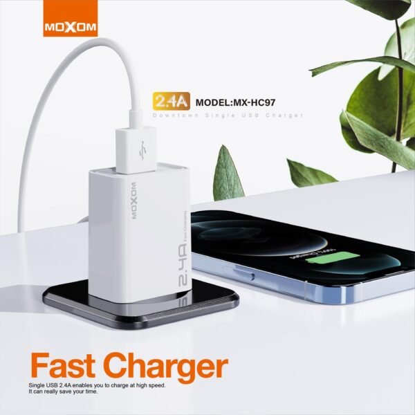 شاحن كهرباء HC97 موكسوم 2.4A منفذ واحد شحن سريع MOXOM MX-HC97 Downtown Single USB Charger (EU)