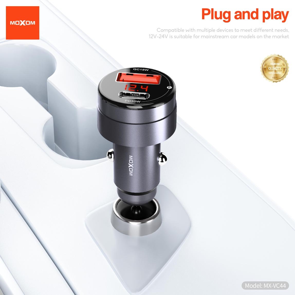 استمتع بالشحن السريع والفعال مع شاحن السيارة موكسوم VC44 سوبر فاست. يتميز هذا الشاحن بتقنية شحن متقدمة تصل قوتها إلى 48 واط، مما يضمن لك شحن أجهزتك بسرعة وأمان أثناء القيادة.