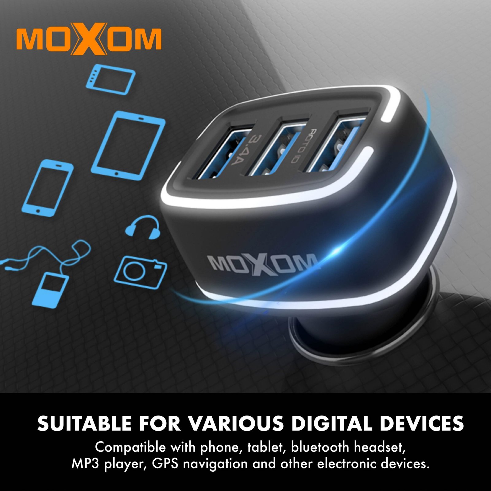 شاحن سيارة MX-VC01 موكسوم 3 منافذ 3.4A مع وصلة شحن/بيانات الأصلي