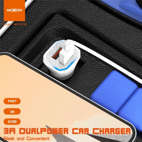 شاحن سيارة MX-VC32 موكسوم (3A) مزدوج شحن 2 أجهزة في وقت واحد