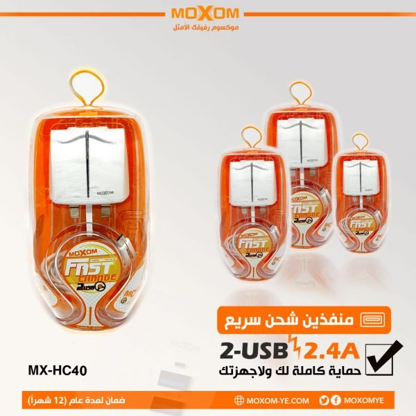 لأن الجودة والأمان يأتيان في المقام الأول. شاحن MX-HC40 من موكسوم يجمع بين الأداء العالي والتصميم الأنيق، مما يجعله شريكك المثالي لتلبية احتياجات الشحن الخاصة بك.