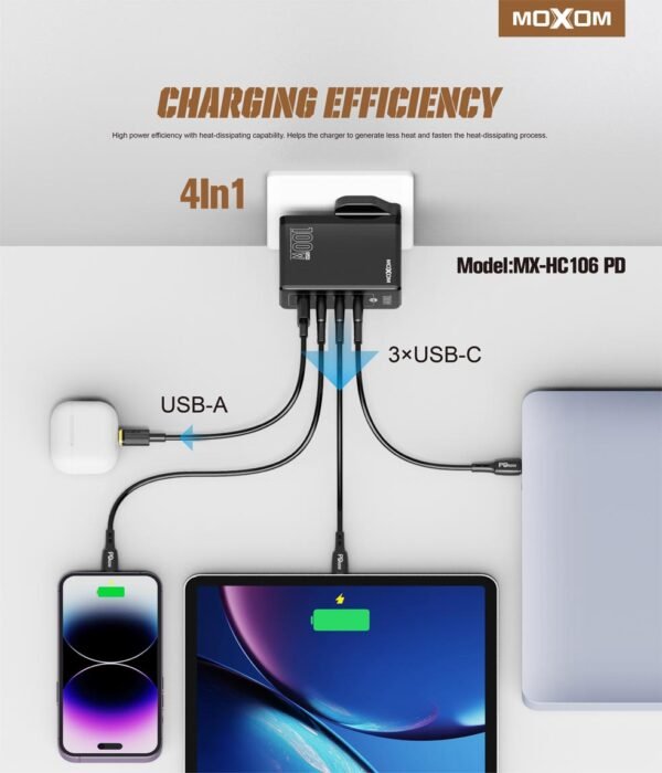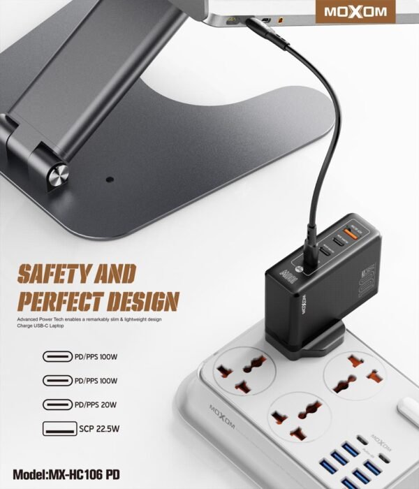 استمتع بأداء موثوق وسرعة شحن مذهلة مع شاحن موكسوم HC106 100W GaN. احصل على شاحن يواكب احتياجاتك اليومية ويضمن لك تجربة شحن لا تُنسى!