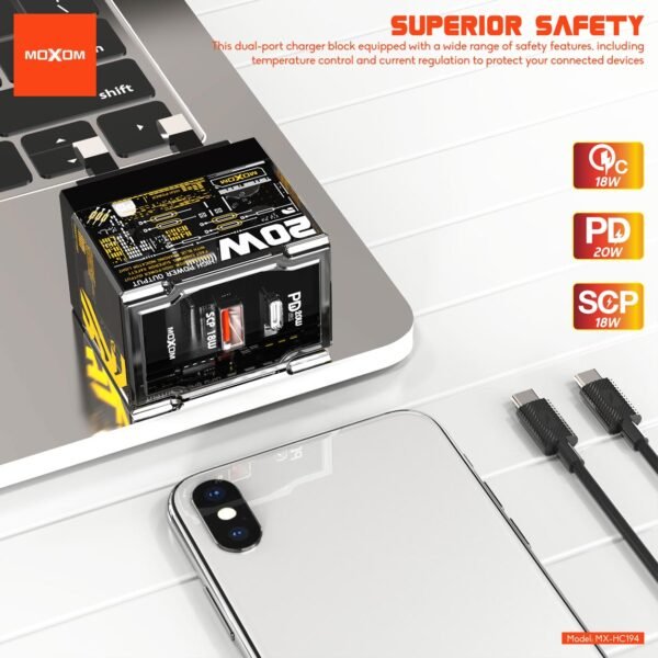 إذا كنت تبحث عن شاحن موثوق وسريع يلبي احتياجاتك اليومية، فإن شاحن موكسوم HC194 هو الخيار الأمثل لك! لا تفوت الفرصة، واحصل عليه الآن لتحصل على شحن سريع وآمن لأجهزتك!