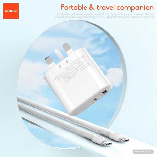 استمتع بشحن سريع وفعال مع شاحن HC190 موكسوم 25W سوبر فاست. تم تصميم هذا الشاحن لتلبية احتياجاتك اليومية، حيث يوفر لك طاقة عالية وسرعة شحن مذهلة.