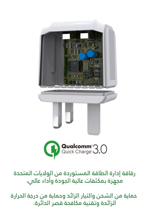 - شحن سريع: تقنية Qualcomm 3.0 تضمن شحن جهازك بشكل أسرع مقارنةً بالشواحن التقليدية.