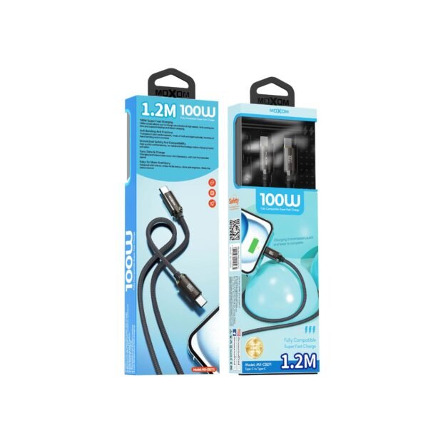 وصلة شحن/بيانات CB271 موكسوم (100W) PD من تايب سي إلى تايب سي كابل قماشي سوبر فاست MOXOM MX-CB271