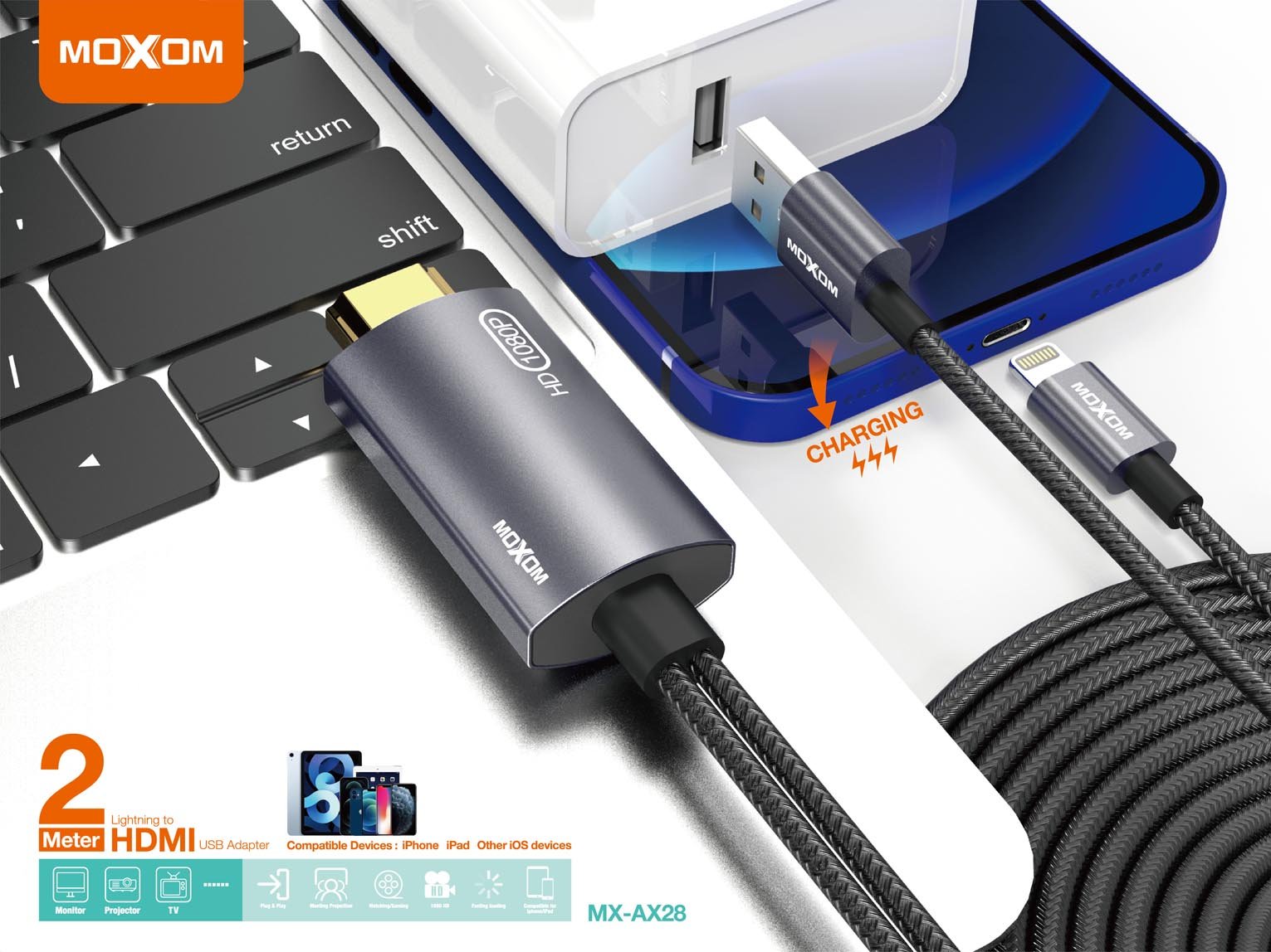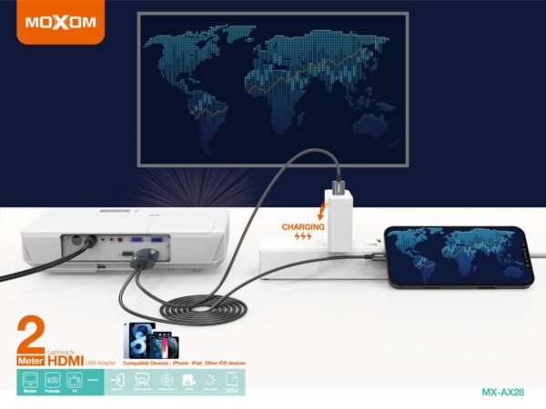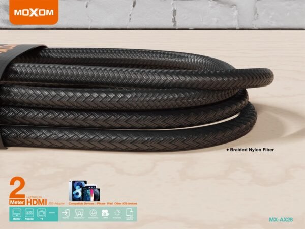 كابل وتحويلة AX28 اتش دي مع شحن موكسوم إلى آيفون (طول 2 متر)