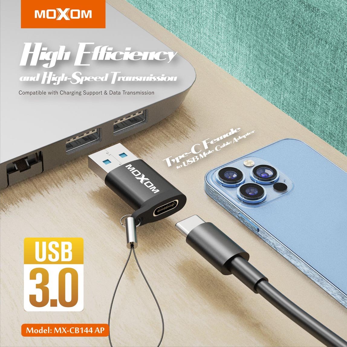 تحويلة شحن/بيانات CB144 موكسوم من تايب سي إلى يو إس بي (USB 3.0) Type-C Female to USB Male Cable Adapter