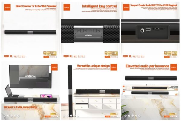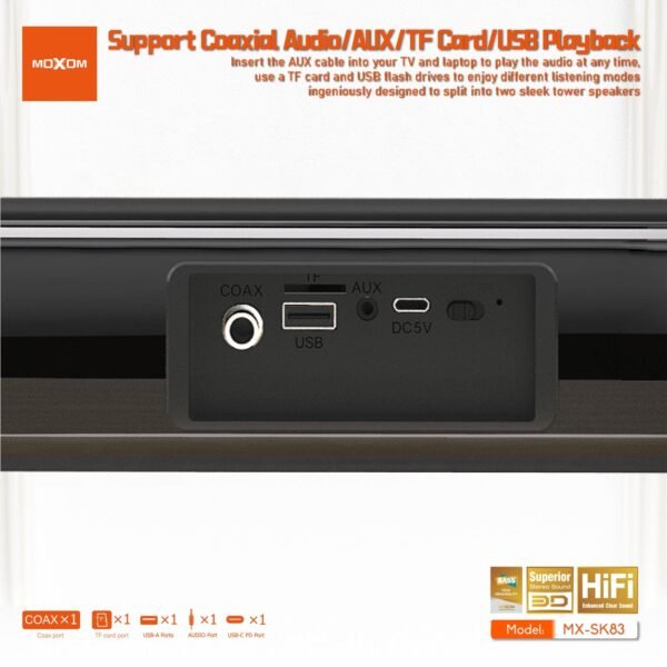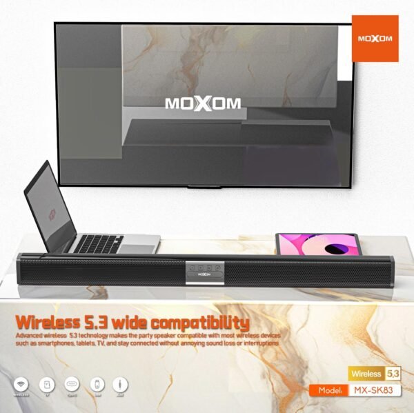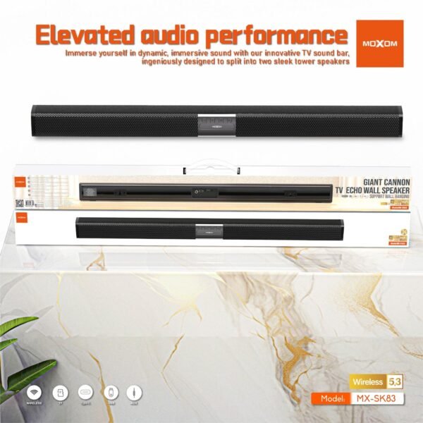 استمتع بتجربة صوتية غامرة مع مسرح منزلي موكسوم SK83، الذي يأتي بتصميم عصري وميزات متقدمة تجعل كل لحظة من وقتك في المنزل تجربة فريدة.
