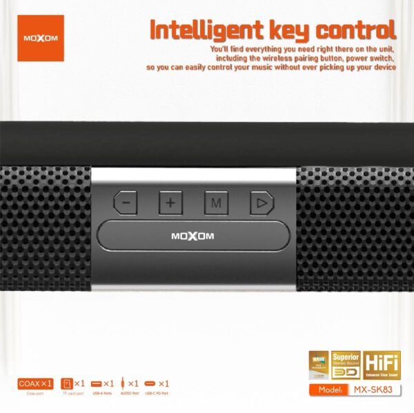 سوف تُعجب بتجربة الصوت الفريدة التي يقدمها مسرح موكسوم SK83، حيث يجمع بين الأداء العالي والتصميم الأنيق. سواء كنت ترغب في تنظيم حفلة منزلية أو مجرد الاستمتاع بفيلم في ليلة هادئة، ستضمن لك هذه السماعة تجربة لا تُنسى.