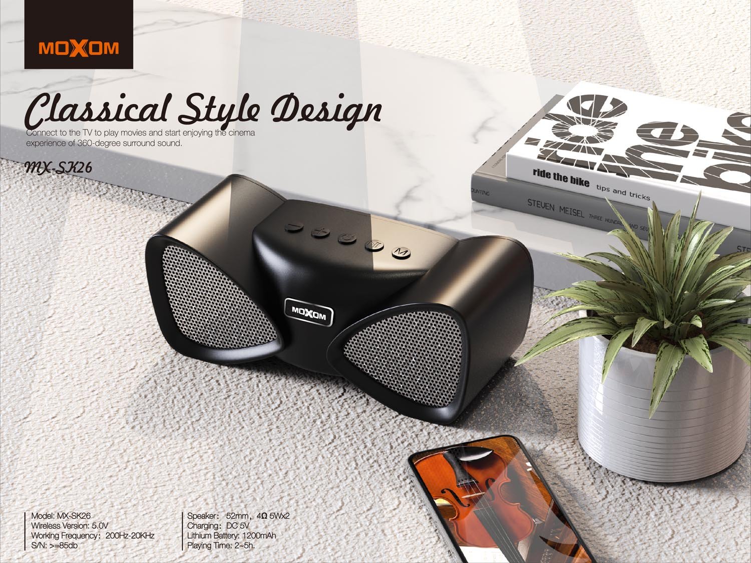استمتع بتجربة صوتية استثنائية مع مكبر صوت MX-SK26 موكسوم اللاسلكي!