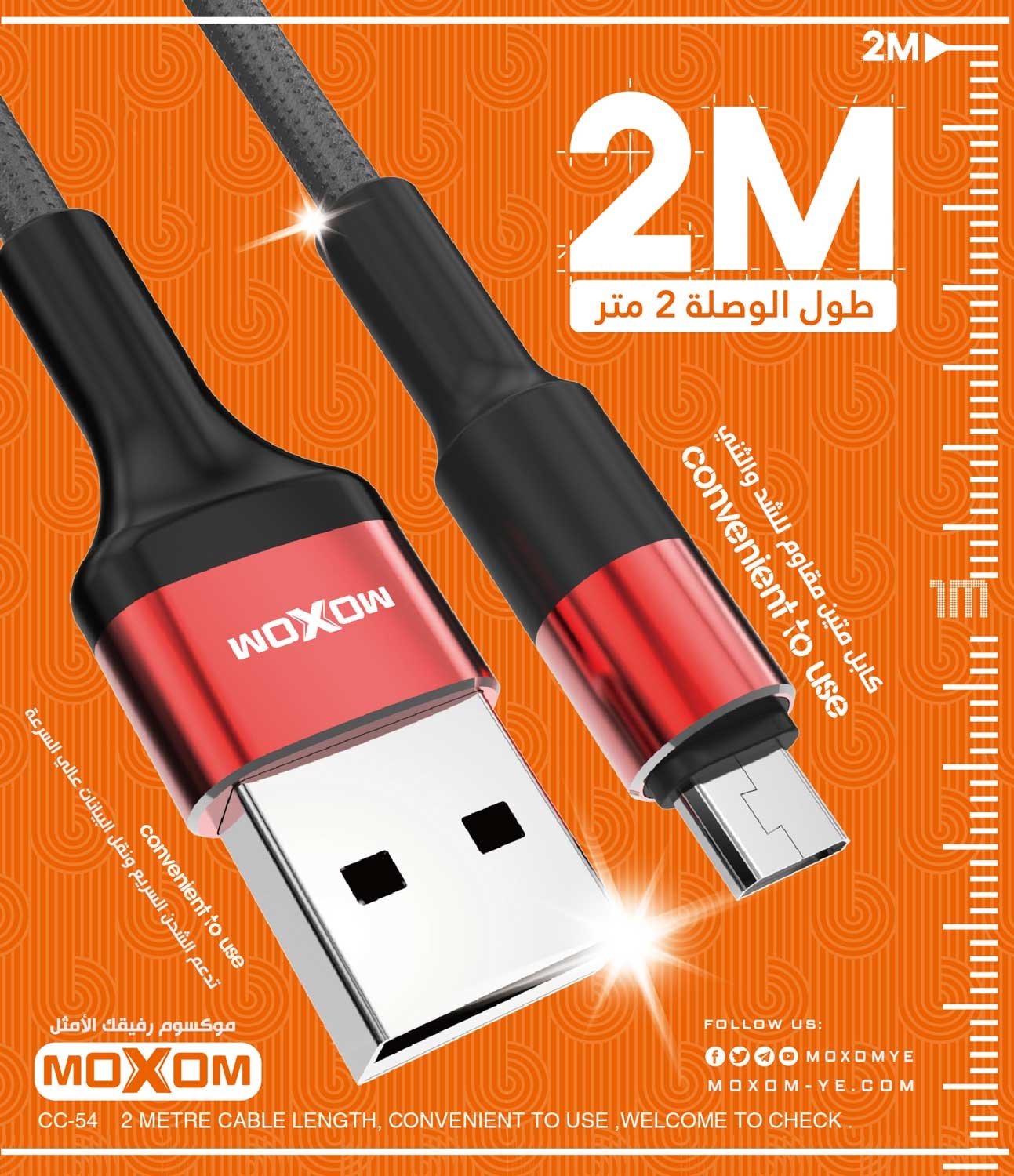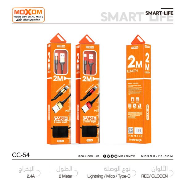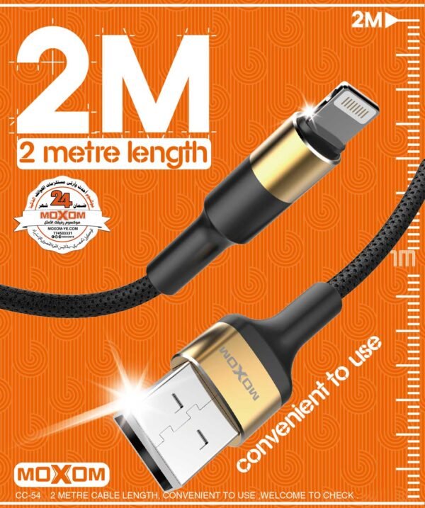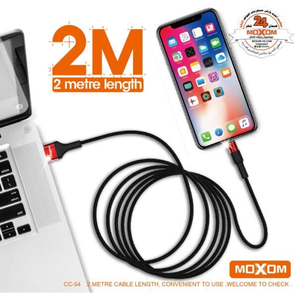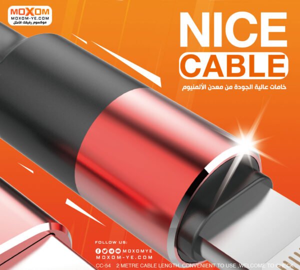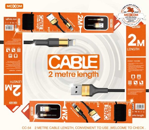 استمتع بتجربة شحن سريعة وفعالة مع وصلة الشحن والبيانات CC-54 من موكسوم. هذه الوصلة مصنوعة من الألمنيوم عالي الجودة وتأتي بطول مترين، مما يجعلها مثالية للاستخدام اليومي في المنزل أو المكتب.