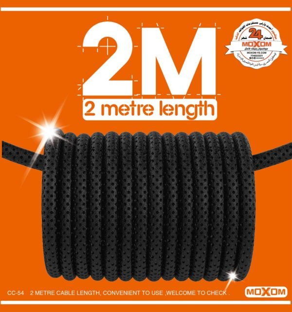 - طول مثالي: بطول مترين، توفر لك حرية الحركة أثناء الشحن أو نقل البيانات.