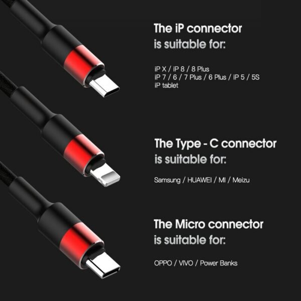 • نوع الوصلة: 3×1 (Lightning, Micro USB, Type-C)